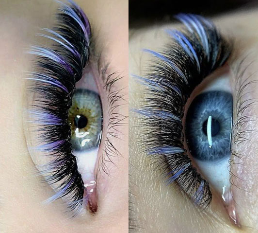 Лучи, мокрый эффект, цветные вставки, коричневые ресницы - +300 ₽